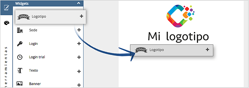 Una de las grandes ventajas del sistema es su editor visual basado en «drag & drop» arrastrar y soltar. Esto permite diseñar portales de forma intuitiva, arrastrando elementos (widgets) directamente sobre la pantalla.