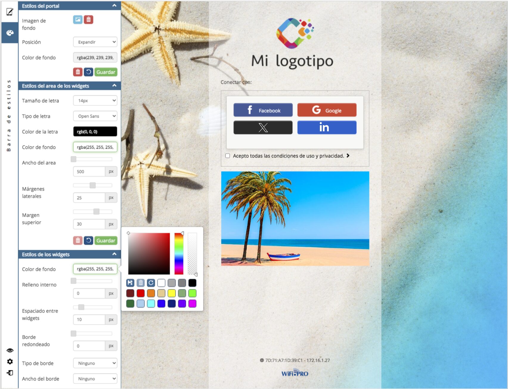 La plataforma de gestión de redes, WiFi.PRO lleva la creación y diseño de portales a otro nivel. Este sistema elimina la dependencia de desarrolladores: el propio cliente puede crear, modificar y publicar su portal en tiempo real, sin esperas ni procesos complejos.