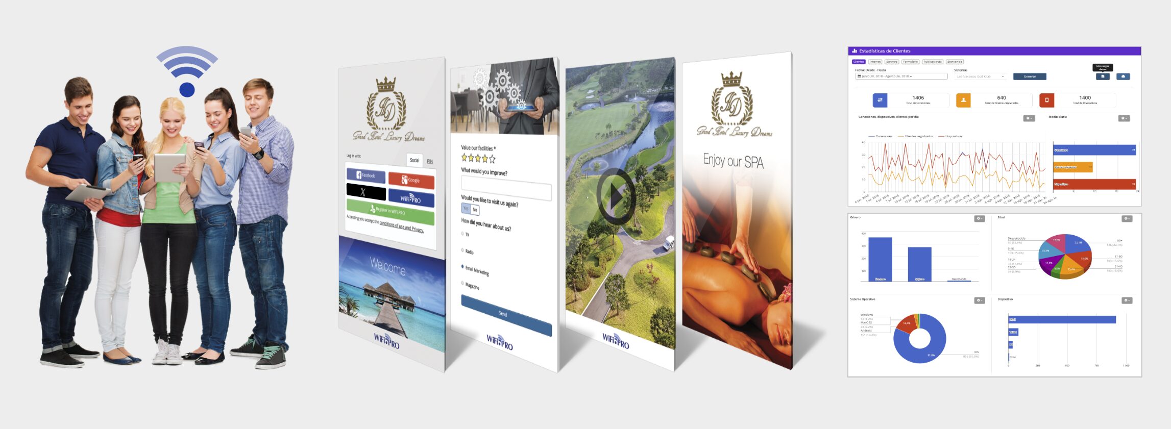 La plataforma de gestión de redes, WiFi.PRO lleva la creación y diseño de portales a otro nivel. Este sistema elimina la dependencia de desarrolladores: el propio cliente puede crear, modificar y publicar su portal en tiempo real, sin esperas ni procesos complejos.
